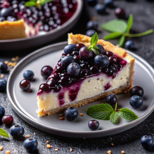 - Перед подачей украсьте чизкейк свежей черникой и листьями мяты для красивого оформления.