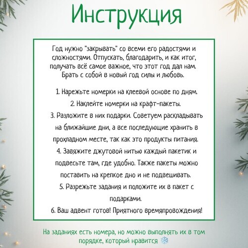 Этот календарь — универсальный подарок, который порадует близких в любой праздник: на Новый год, День рождения, 8 Марта или просто без повода. Его можно использовать в любое время года, создавая маленькие моменты радости и заботы каждый день. Идеальный способ показать внимание и подарить эмоции, которые запомнятся надолго.