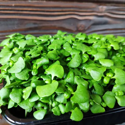 Росточки базилика не очень большие по размеру (около 2–3 см), внешне и по вкусу абсолютно точно повторяют «большого брата».