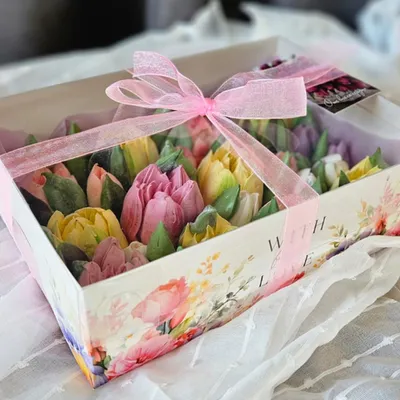 Зефир цветы «Тюльпаны ассорти» в коробке/23*16 см