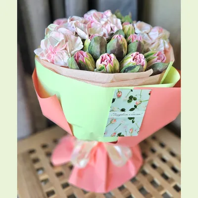 *Цвет упаковки, лент может различаться. Но обязательно будет сочетаться с цветами в букете и подчёркивать их красоту.