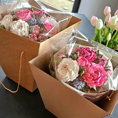 *Цвет упаковки, лент может различаться. Но обязательно будет сочетаться с цветами в букете и подчёркивать их красоту.