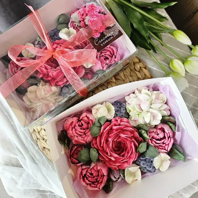 Зефир в коробке «Пионы и Розы» / 23*16 см