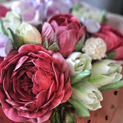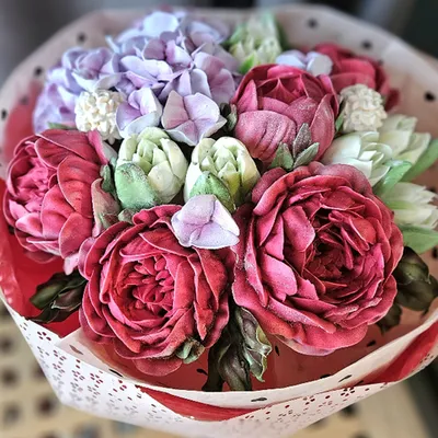 Букет из зефира «Пионы и гортензии» / 28-30см