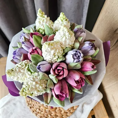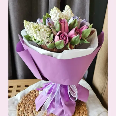 Букет из зефира «Тюльпаны с сиренью» малый/23-25см