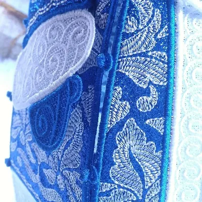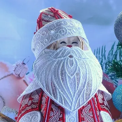 Большой, сверкающий и сияющий, красивый, нарядный Дед Мороз! Создан в технике машинной вышивки с аппликацией из блесток (глиттера)