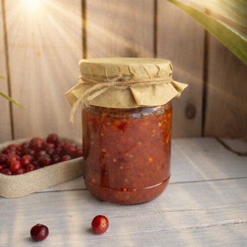 Натуральный джем из отборной северной клюквы с ярким кисло-сладким вкусом и лёгкой горчинкой. Приготовлен из свежих ягод с добавлением сахара, без искусственных добавок. Идеальный источник витаминов зимой, подходит для выпечки, соусов и укрепления иммунитета.