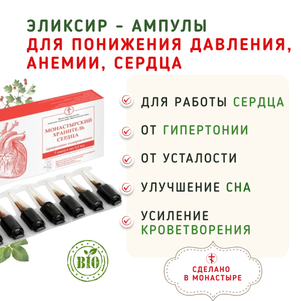 Эликсир - ампулы для понижения давления, анемии и сердца/7 шт