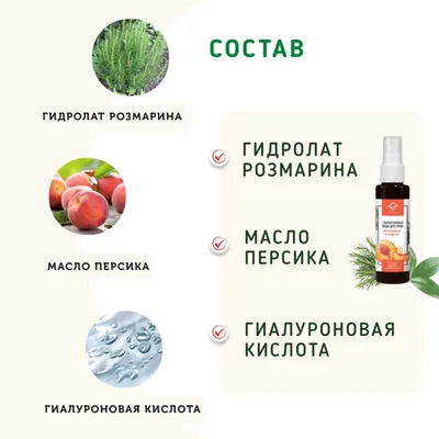 Состав: гидролат розмарина, гиалуроновая кислота, масло персика.