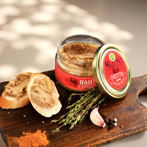 Паштет создается из отборной говяжьей печени и свиной грудинки, что обеспечивает насыщенный вкус и кремовую консистенцию. Мускатный орех и черный перец раскрывают вкус качественных ингредиентов, а репчатый лук придает легкую сладость. Технология медленного приготовления сохраняет все полезные свойства фермерского мяса.