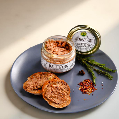 Паштет готовится по особой рецептуре, где гусиная печень гармонично сочетается с куриной печенью и свиной грудинкой. Кедровые орешки, морковь и черный перец создают сложный вкусовой букет, а репчатый лук придает легкую сладость. Технология медленного приготовления позволяет сохранить сочность и характерный аромат фермерского гуся.
