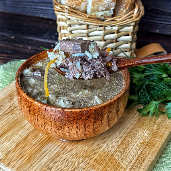 Готовый суп Харчо. Суп заморожен достаточно только разогреть. В составе только натуральные ингредиенты. Настоящий кулинарный шедевр. Мы используем только отборное мясо баранины, подсолнечное масло, свежий чеснок и ароматную зелень кориандра в сочетании с хмели-сунели и грецкими орехами. Большая порция, такого объема хватит двоим деткам или одному взрослому мужчине.