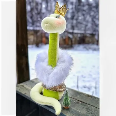Эта милейшая змейка не только порадует глаз, но и станет символом уюта и тепла в праздник. Благодаря мягким материалам и прекрасной отделке, она выглядит по-настоящему волшебно. Приятные цвета и уникальный дизайн создают атмосферу сказки. На ее головке расположена корона, блестящая и сверкающая, которая добавляет особый шик и царственность этому чудесному созданию. Аккуратные детали сделают эту игрушку изысканным акцентом в праздничном декоре!
