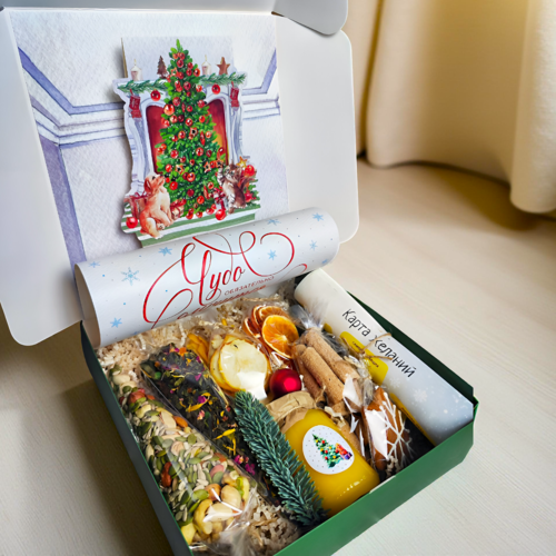 Этот набор создан для того, чтобы вы подарили себе время — время на мечты. Карта желаний — это ваш личный маяк, который мягко, без давления, помогает расставить приоритеты и увидеть путь к тому, что делает вас счастливым. В удобной коробке вас ждёт всё для этого путешествия внутрь себя: специальная разметка с важными сферами жизни, красивые наклейки-символы, удобный клей и мудрая инструкция-проводник. А ещё — коллекция тщательно подобранных натуральных угощений. Создавая свою карту за чашкой ароматного чая с мёдом и сушёным манго, вы превращаете планирование в акт любви и заботы о себе.