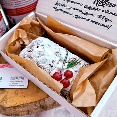 Состав: чернослив, курага, изюм светлый, изюм тёмный, финики, вяленая клюква, вяленая вишня, цукаты цитрусовых, свежевыжатый сок и цедра апельсина, орехи грецкие, кешью, фундук, яйца куриные, мука пшеничная органическая в/с, мука пшеничная органическая 1 сорт, мука пшеничная органическая цельнозерновая, масло сливочное 82,5%, мёд натуральный, тростниковый органический сахар, разрыхлитель, соль, кардамон, мускатный орех, гвоздика, корица, перец душистый