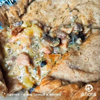 В начинке не только фермерское мясо (мякоть свинины и говядины), но еще и картофель с белыми лесными грибами. Это уже не просто пирог, а полноценное блюдо, способное заменить обед или ужин. В составе натуральные ингредиенты, без консервантов. Пирог для выпекания в духовке!