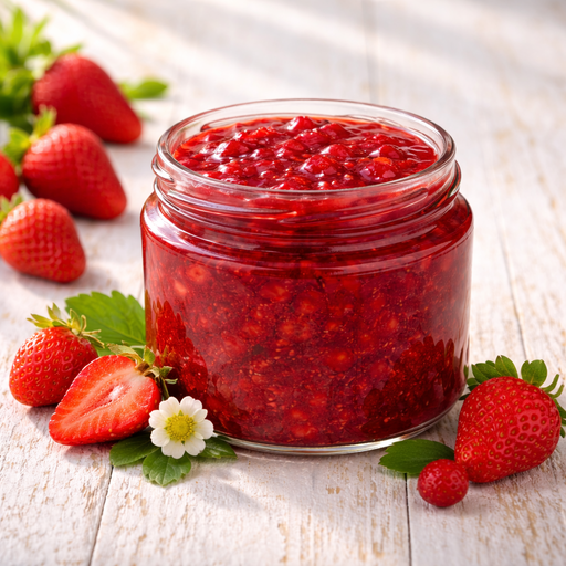 Клубничное варенье домашнее — это ароматное летнее лакомство, сваренное вручную из спелой клубники и сахара. В составе только ягоды и сахар — без загустителей, красителей и консервантов. Натуральный сладкий вкус с лёгкой кислинкой напоминает о свежей клубнике с грядки и домашних заготовках.