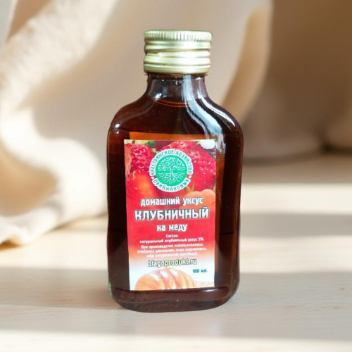 Натуральный уксус естественного брожения из домашней клубники, целебного мёда и родниковой воды. Обладает мягким ягодным вкусом и комплексным действием для поддержки иммунитета, сосудов и обмена веществ. Для оздоровительного приёма и кулинарии.
