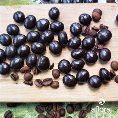 Кофейные зерна, покрытые темным шоколадом — это вкусное и полезное лакомство. Кофе — известный источник антиоксидантов, что помогает нейтрализовать свободные радикалы и поддерживает здоровье клеток. Он также стимулирует центральную нервную систему, повышая уровень энергии и улучшая настроение. Темный шоколад, обладая высоким содержанием флавоноидов, способствует снижению артериального давления и улучшению кровообращения, а также помогает поддерживать здоровье сердца.