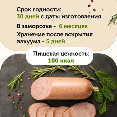 Срок годности и условия хранения: 30 дней с даты изготовления. В морозильной камере срок хранения - 6 месяцев. Рекомендованное время хранения в холодильнике после вскрытия вакуума - до 5 дней.