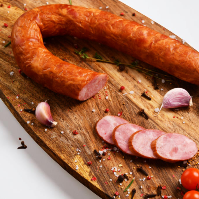 Рецептура колбасы содержит только понятные и натуральные ингредиенты. Отборная свинина служит источником белка и незаменимых аминокислот, важных для мышечной ткани и общего тонуса организма. Натуральный чеснок известен своими полезными свойствами, а черный перец способствует улучшению обмена веществ.
