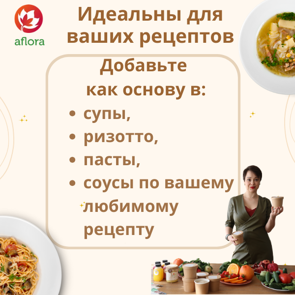 Костный бульон полезный, вкусный, в удобной упаковке. На его основе можно сварить суп, добавить его в ризотто, плов и обогатить вкус любого блюда. А еще его можно пить сам по себе всей семьей.