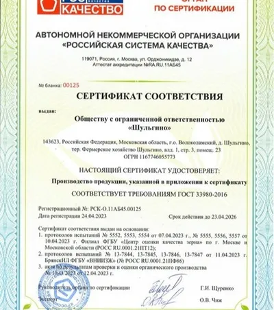 Продукция сертифицирована по стандартам ЕС и России, что подтверждает её органическое происхождение и безопасность.