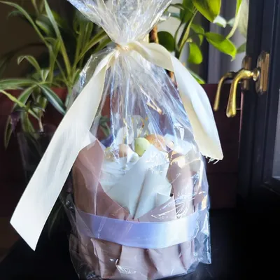 Для экономии времени предлагаем попробовать готовый кулич ручной работы. Классическое угощение с плотным дрожжевым тестом и изюмом, милый праздничный дизайн - все это позволит куличу стать украшением стола на праздник.