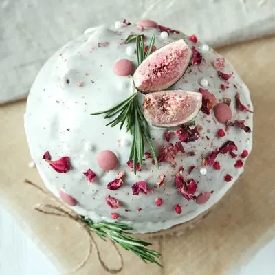 Декор: сублимированные инжир и малина, лепестки дамасской розы, рубиновый шоколад, розмарин