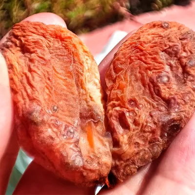 Курага из абрикосов сорта "Шалах". Этот сорт выведен в Армении и иначе называется ананасным. Он ценится за непревзойденные вкусовые качества и медовый аромат. Благодаря бережной естественной сушке получается питательной: для насыщения достаточно съесть несколько штук.