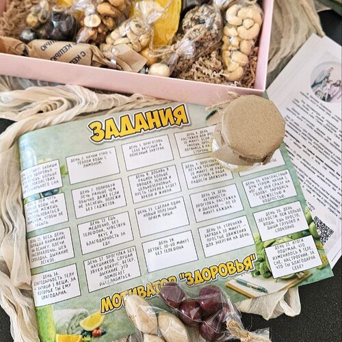 Формат мотиватора основан на принципе поддержки, а не контроля. Выполняя по одному заданию в день, вы последовательно и без давления формируете полезные привычки. Каждое выполненное задание вознаграждается выбором натуральной полезной сладости из набора, что создаёт позитивное подкрепление и сохраняет в процессе радость и удовольствие. Этот подход помогает наладить гармоничный контакт с потребностями своего тела.