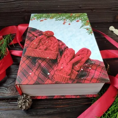 Продукты упакованы в красивую плотную картонную коробку в виде книги.
