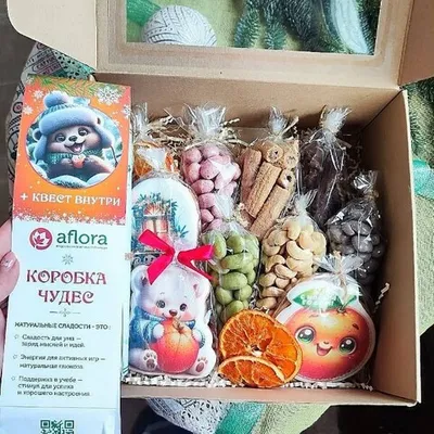 В составе набора вы найдете натуральные чипсы из апельсина, которые поднимут ваше настроение и насытят организм витаминами. Миндаль в укропном шоколаде с йогуртом и брусничным йогуртом порадует не только своим изысканным вкусом, но и обеспечит вас полезными жирами и антиоксидантами, поддерживающими иммунитет. Кешью, богатые магнием, добавят в ваш рацион необходимую энергетику, а нежные бананы в чернике и тирамису станут изюминкой любого праздника. Не забудем и о трех пряниках ручной работы – не только сладкое угощение, но и атрибут здоровья благодаря натуральным ингредиентам. И, конечно, новогодняя гирлянда и увлекательный квест подарят вашим близким радость и незабываемые эмоции, укрепляя семейные связи.