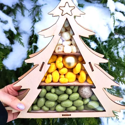 - Деревянная коробка в форме елки -1шт
