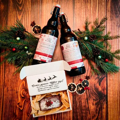 Самый душевный и оригинальный подарок 2024 года! Два крафтовых безалкогольных напитка по авторским рецептам и божественный кекс с цукатами, орехами и сухофруктами.