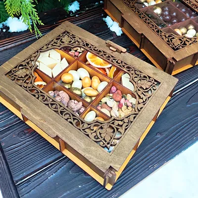 Шкатулка выполнена из высококачественного дерева, что придаёт ей стильный и уютный вид. Ее можно использовать для хранения различных вещей, будь то сладости, чайные пакетики, орехи или даже небольшие игрушки. Кроме того, она станет красивым декором вашего дома или интересным акцентом на праздничном столе. Ваша семья и друзья оценят такую многофункциональность!