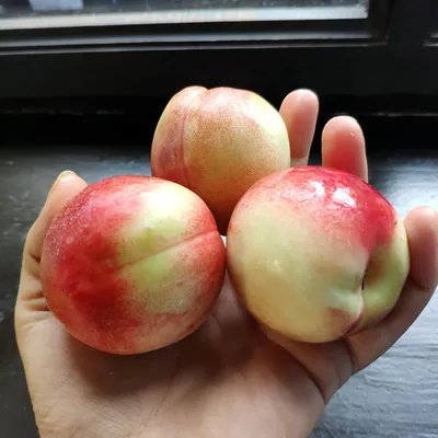 Свежие, нежные и очень сочные розовые нектарины. Натуральный фрукт из экологически чистого района от садоводческого общества. Привозим каждое утро, перед отправкой к вам домой.