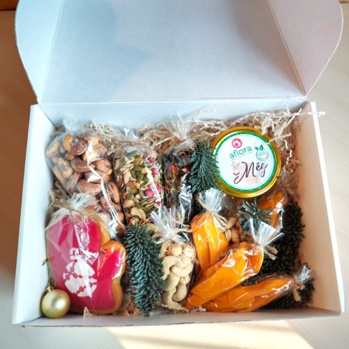 Польза и натуральность: В основе набора — натуральные орехи и мёд, известные своими полезными свойствами. Все продукты отобраны с акцентом на качество и безопасный состав.