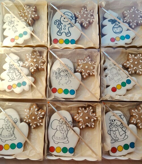 Этот необычный пряник-раскраска превратит предновогодние дни в настоящий творческий процесс! На поверхности ароматного пряника, выполненного в форме пушистой новогодней ёлки, нанесён чёткий контур весёлого снеговика с уже готовыми пищевыми красками. В набор входит специальная кисточка — всё, что нужно для увлекательного занятия. Просто смочите кисточку водой, обмакните в краски на прянике и начинайте раскрашивать! Пряник изготовлен по традиционному рецепту из натурального мёда, отборной муки высшего сорта и свежего сливочного масла с добавлением согревающих специй. После завершения творческого процесса готовый съедобный шедевр можно будет с удовольствием съесть!