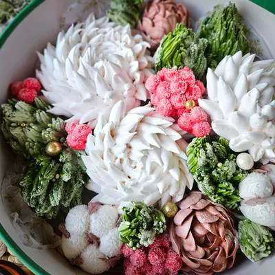Новогодний зефир круглый «Хризантемы» / 25 см