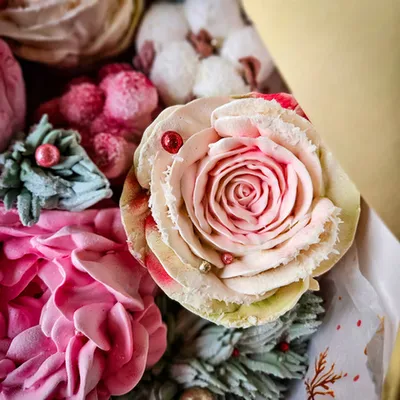 Новогодний зефир круглый «Пион и Розы» / 25 см