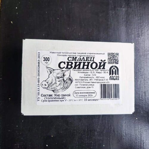 Нутряной жир (смалец) свиной / 300 гр