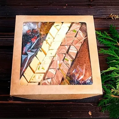 Вся продукция плотно закрыта, что позволяет сохранить вкусовые качества. Стильная крафтовая коробка с "окном" в качестве упаковке делает этот набор универсальным подарком для любого: для мужчины и женщины, другу, члену семьи или коллеги.