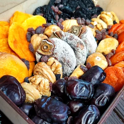 Идеальное сочетание полезных и вкусных натуральных продуктов. Вы найдете сушеные персики, оранжевую курагу, сладкие финики, чернослив теневой сушки, инжир, дыню, хурму и изюм. Этот бокс не только подарит незабываемые вкусовые ощущения, но и принесет неоценимую пользу вашему здоровью. Подарок на любой повод.
