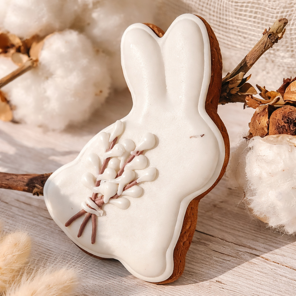 Пряник «Пасхальный зайчик с вербой» — это ароматное лакомство ручной работы, приготовленное из натуральных продуктов. В составе: цельнозерновая мука, мед, сливочное масло, яйцо, корица, имбирь, кардамон и мускатный орех. Никаких консервантов, маргарина или искусственных добавок — только то, что вы использовали бы дома.
