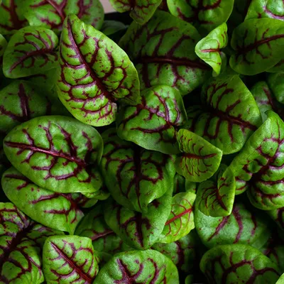 Побеги щавеля с красными прожилками выглядят очень нарядно и обладают приятным кисловатым вкусом.