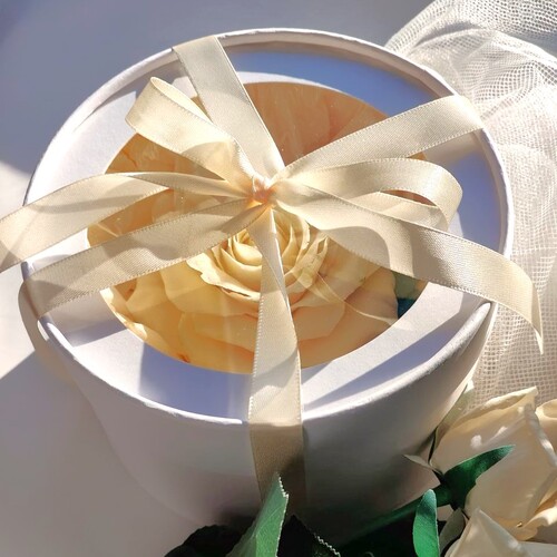 Эта роза создана с ювелирной точностью — каждый лепесток бутона вручную отлит из белого шоколада SICAO и окрашен натуральными пищевыми красителями в нежный бежевый оттенок. Для придания пластичности и прочности в состав добавлены глюкозный сироп и растительное масло. Реалистичная форма, тонкая проработка деталей и размер в 16 см делают этот десерт настоящим произведением кондитерского искусства. Роза представлена в индивидуальной элегантной упаковке.