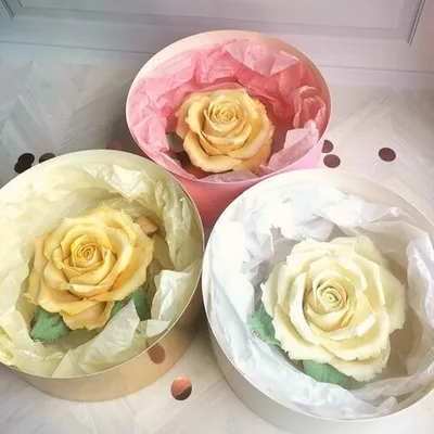 Реалистичная шоколадная роза ручной работы. Нежный бутон из белого шоколада, окрашенный в бежевый цвет. Элегантная подарочная упаковка.