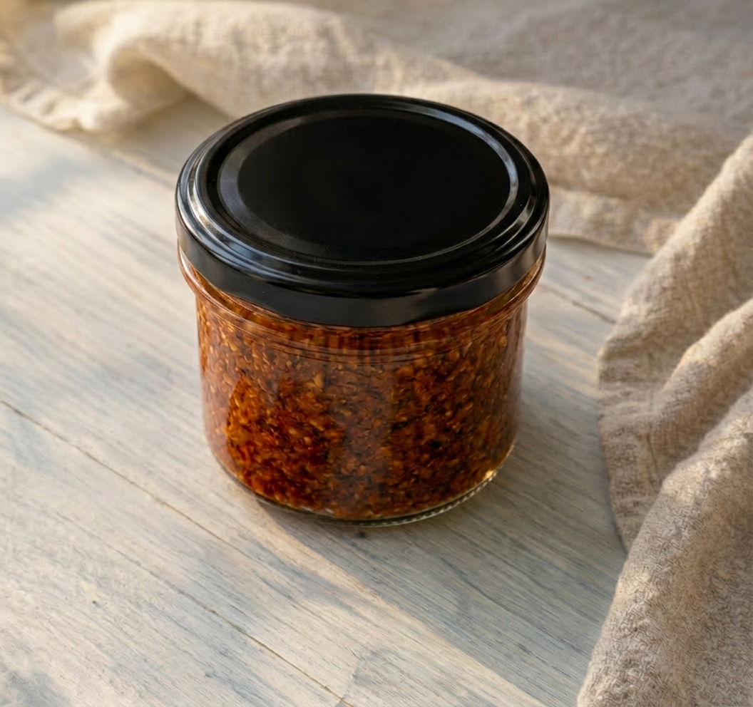 Заморозка позволяет сохранить все свойства ингредиентов без потери качества. Соус не требует варки или разогрева: просто разморозьте его при комнатной температуре или добавьте замороженным в горячую пасту, ризотто, к мясу или запечённым овощам. Это идеальное решение для быстрых ужинов и блюд с характером.