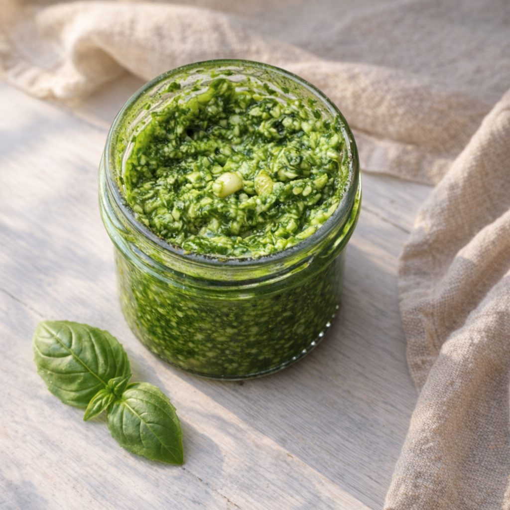 Соус идеально подходит для пасты, ризотто, мяса, рыбы или просто как дополнение к свежему хлебу. Насыщенный вкус базилика, пикантность пармезана и нежный аромат кедровых орехов сделают любое блюдо особенным.